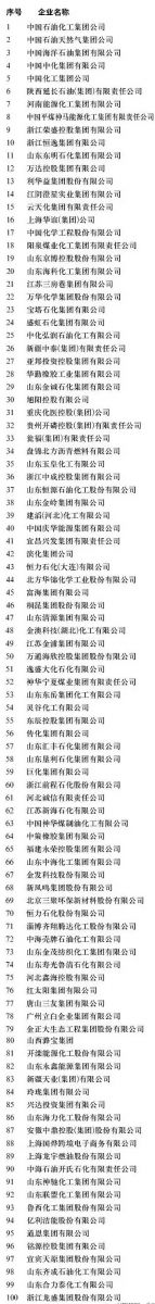 排名前十名的企业是:中国石油化工集团公司,中国石油天然气集团公司,中国海洋石油集团有限公司,中国中化集团有限公司,中国化工集团公司,陕西延长石油(集团)有限责任公司,河南能源化工集团有限公司,中国平煤神马能源化工集团有限责任公司,浙江荣盛控股集团有限公司,浙江恒逸集团有限公司。